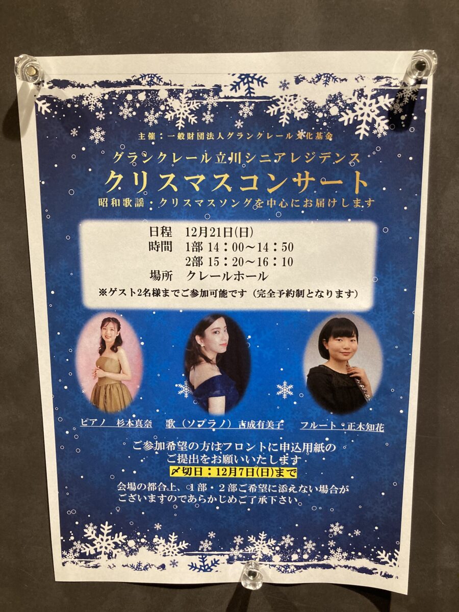『一般財団法人グランクレール文化基金主催 クリスマスコンサート』を開催いたしました。