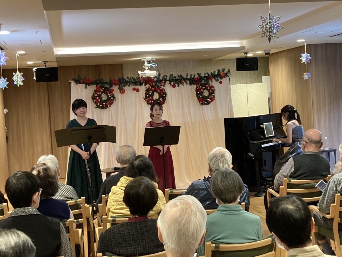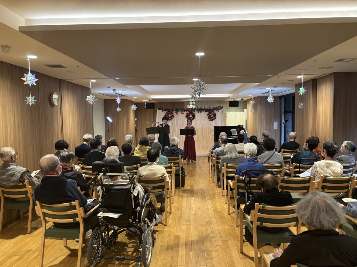 美しい歌声とやさしい音色が会場いっぱいに広がり、ご入居者の皆さまも自然と笑顔に。