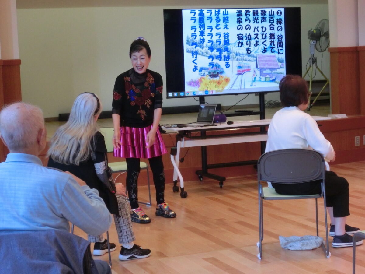 今回は「旅愁」「高原列車」「エーデルワイス」など、計5曲を全員で歌いました♪