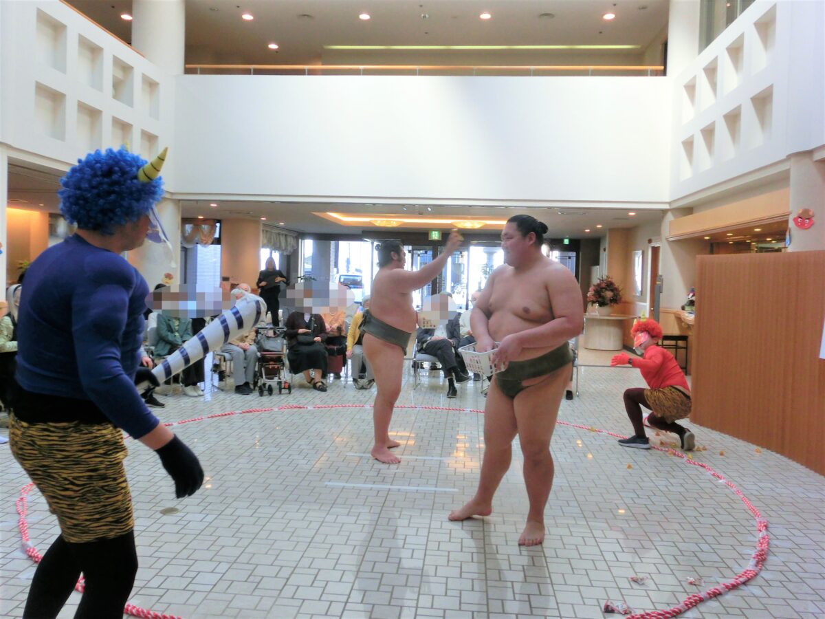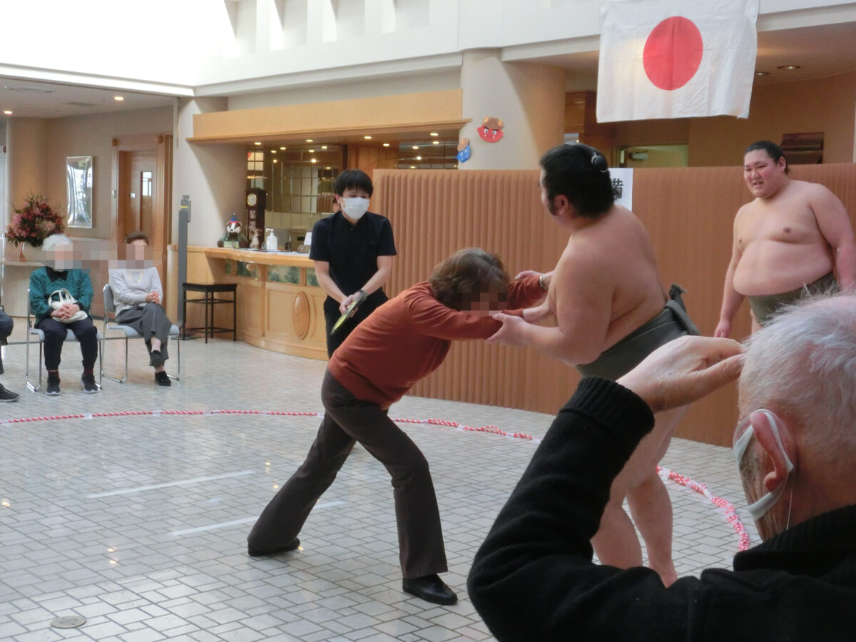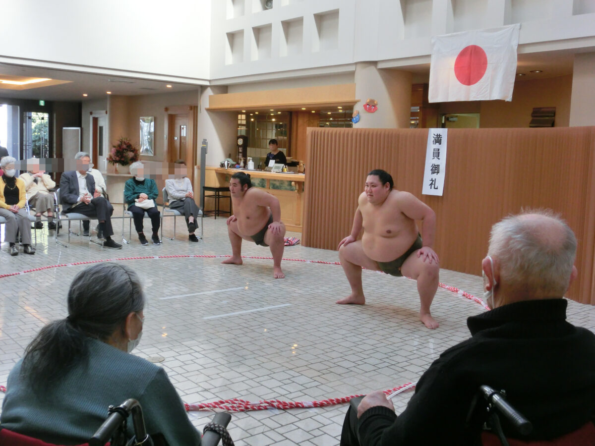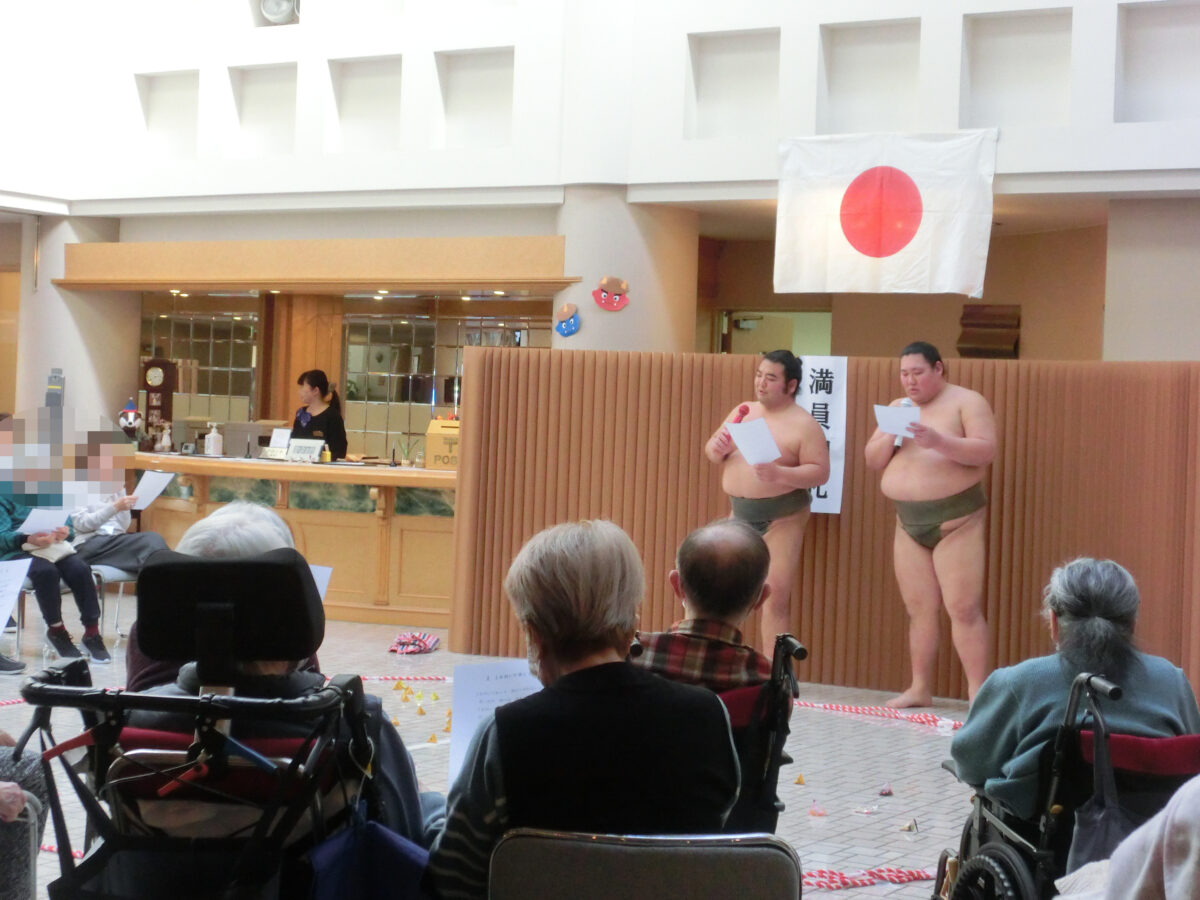 そして一昨日の2/4、芝田山部屋から錦国関と浜田山関をお招きし、慰問に来て頂きました!