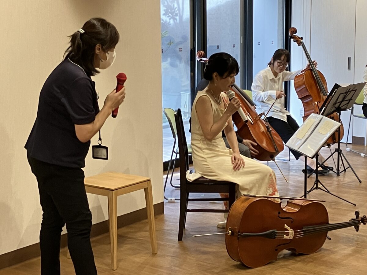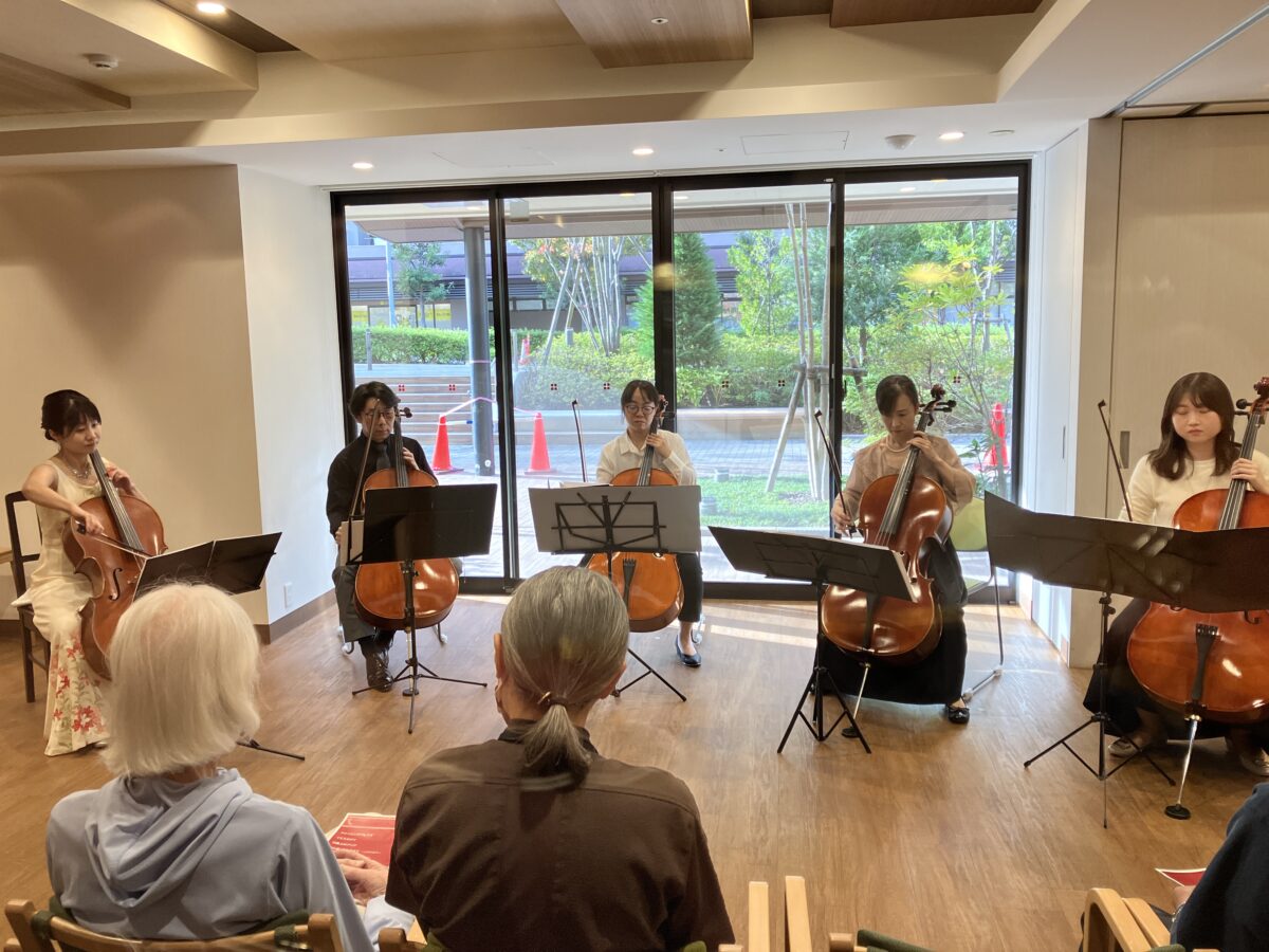ホームクレール横浜十日市場では、クレールレジデンスにお住まいの方はもちろん、ホームクレール会員様や地域にお住まいの方にもご覧いただいた、チェロの演奏会を開催いたしました。