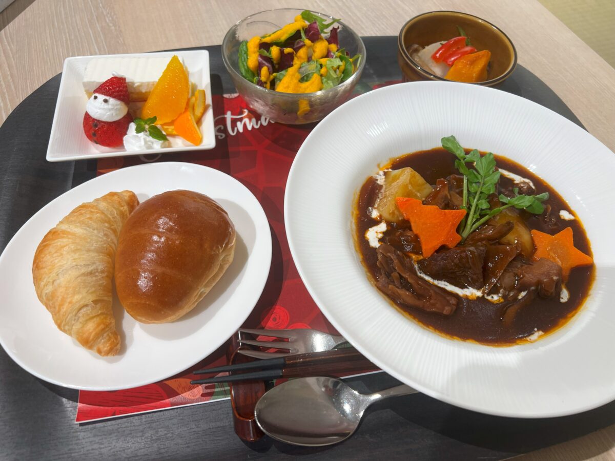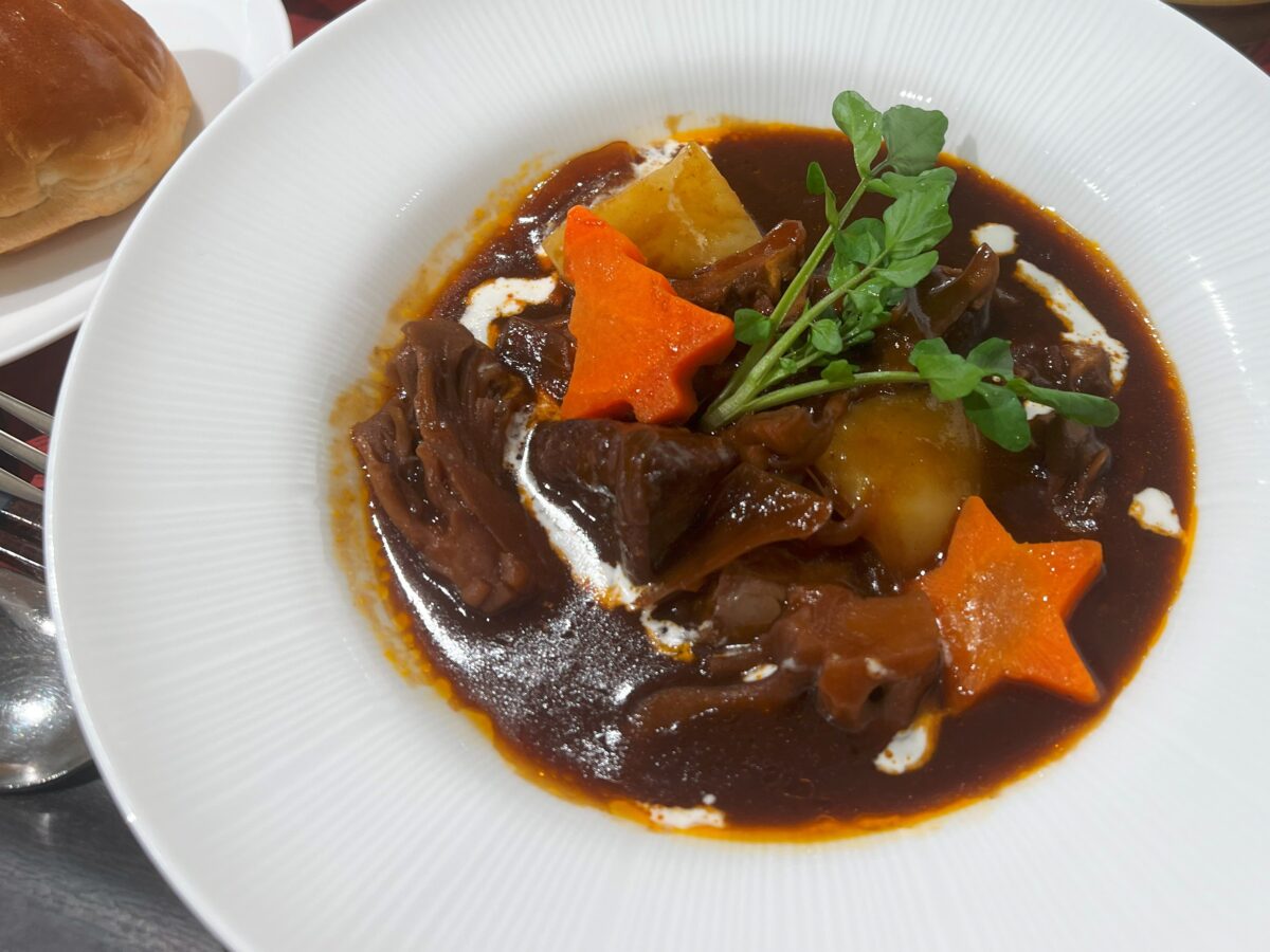 メインのシチューはゴロっとした牛肉が入っていて、とっても柔らかく、