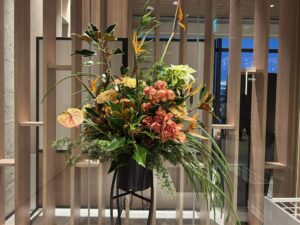 前日11/30は開業記念 スタンド花にもポインセチアを素敵にアレンジ(^▽^)/