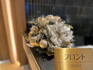 前日11/30は開業記念 スタンド花にもポインセチアを素敵にアレンジ(^▽^)/