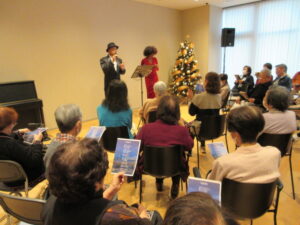 アージーとゲイリーは日本語が得意ではないので、ご入居者がリードして一緒に「SUKIYAKI」ソングを!