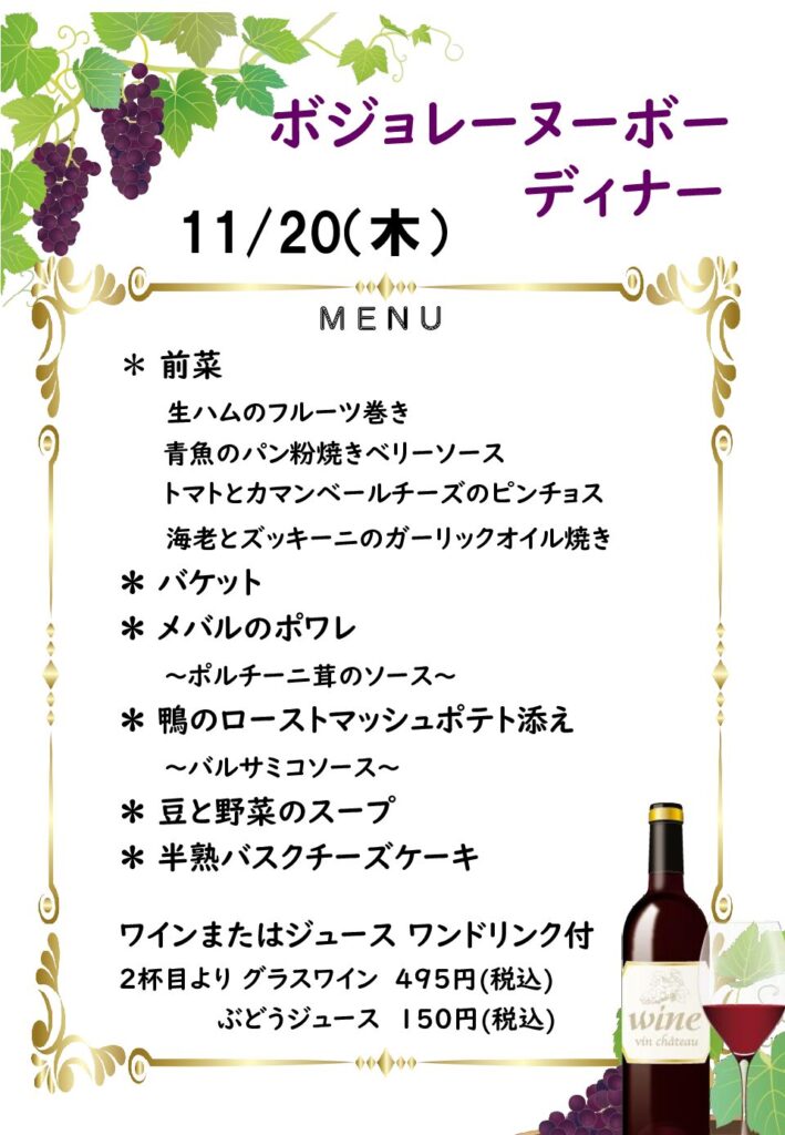 11月20日(木)、グランクレール美しが丘では、秋の風物詩「ボジョレーヌーボー」... -