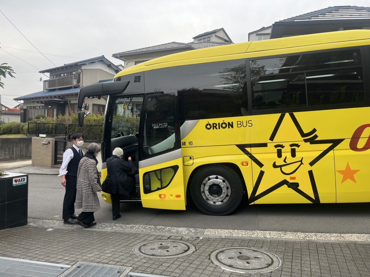 都心での観劇という特別な時間。近隣住宅のご入居者様と一緒に、大型バスで渋谷までお出かけしました。