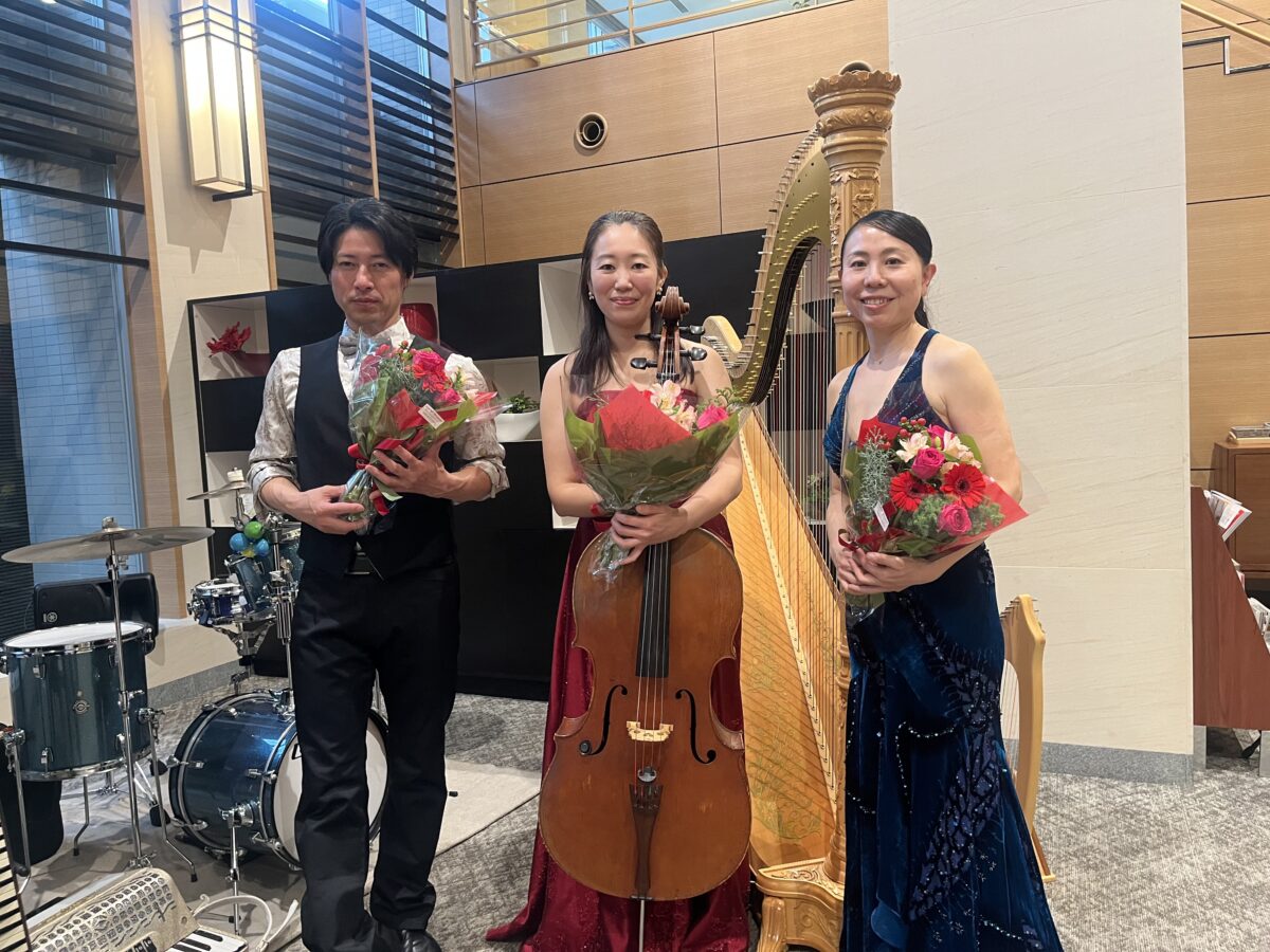 ハープ奏者 入之内由紀さん、チェロ奏者 太がつ田陽子さん、そしてドラム・ピアノ・アコーディオンなど多彩な楽器を操るマルチ奏者 鈴木康佑さんによる豪華トリオが登場。