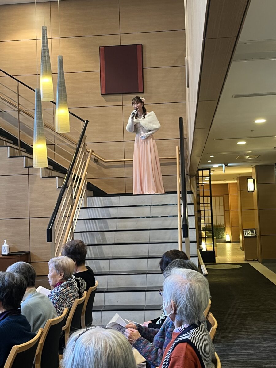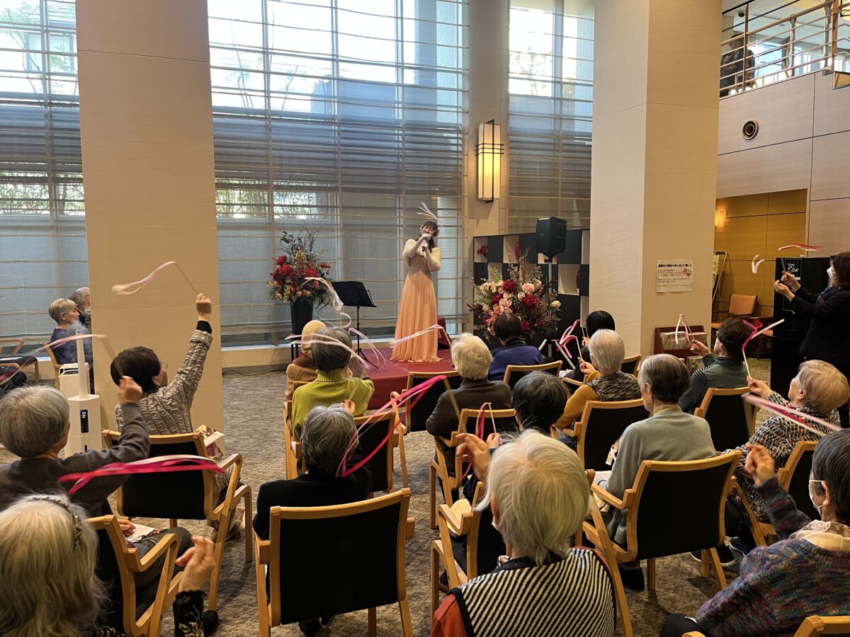 ご入居者の皆さまも声を合わせて歌い、会場がひとつになるような温かなひとときに🎶