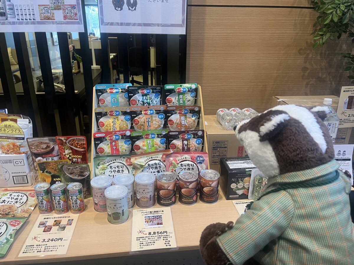 長期保存できるご飯やパン、スープなどがずらり。